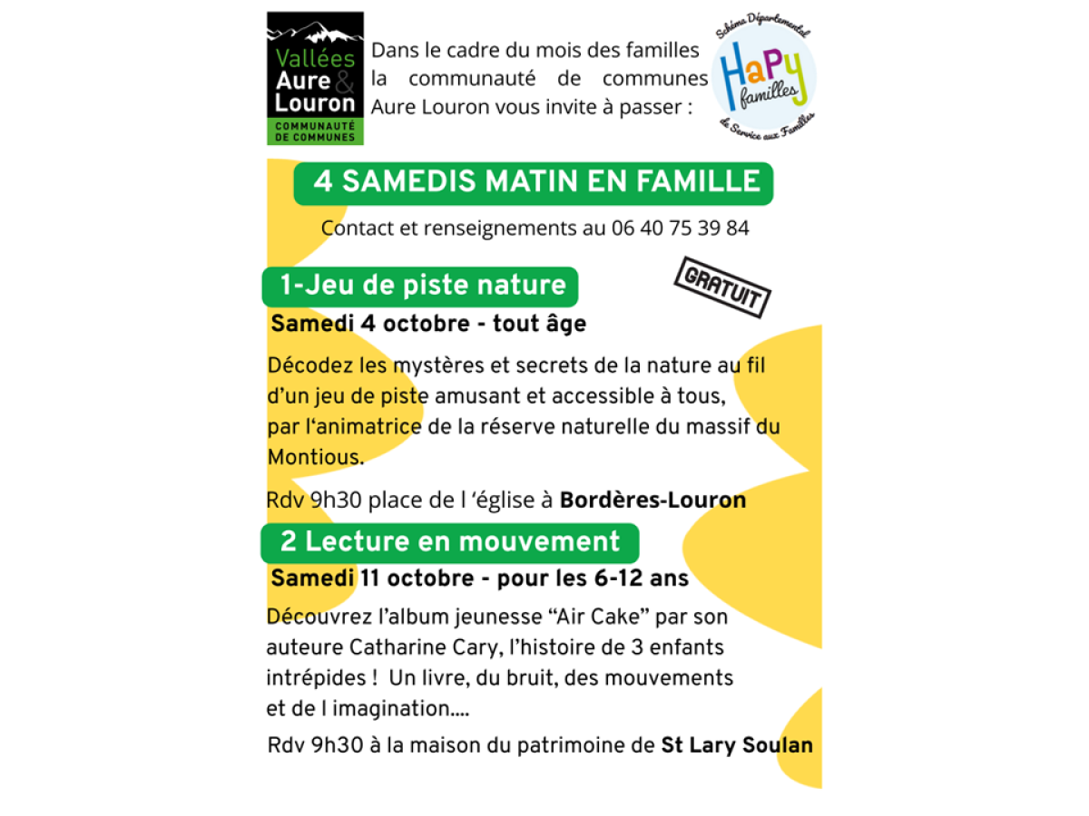 Mois des familles en Aure Louron : programme octobre 2025