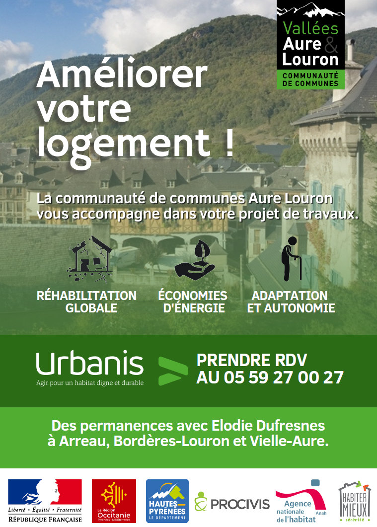 Avec l’Opération Programmée d’Amélioration de l’Habitat (OPAH), la Communauté de Communes Aure-Louron et ses partenaires vous proposent un accompagnement personnalisé et gratuit ainsi que des aides financières destinées à l’amélioration des logements anciens.