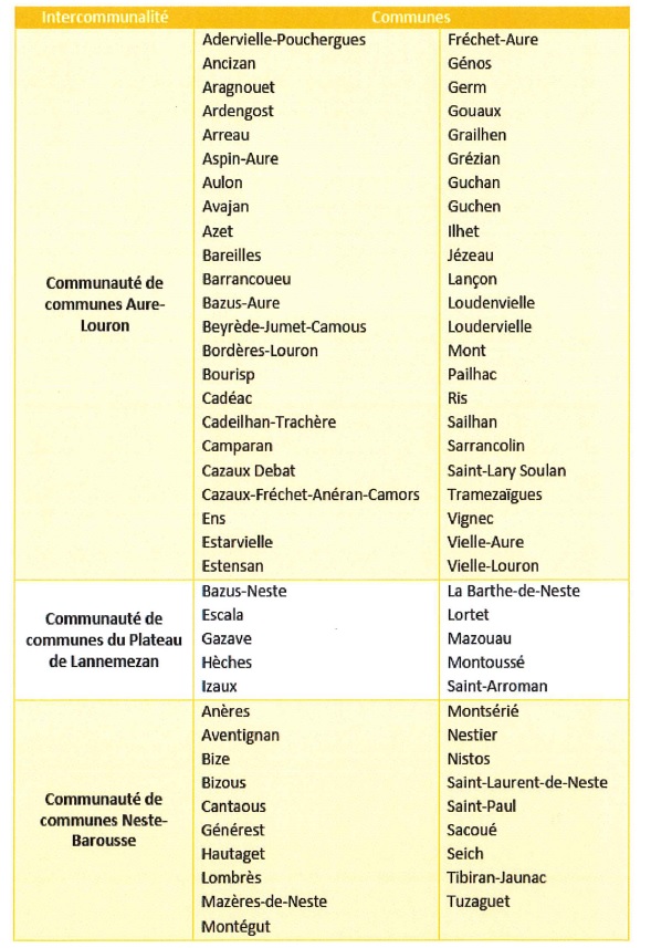 Ce programme concerne 75 communes dont l’intégralité des 46 communes du territoire de la Communauté de communes Aure Louron.