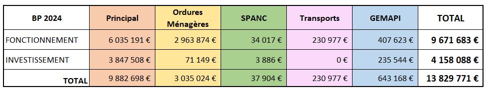 RECAPITULATIF Budgets Prévisionnels 2024