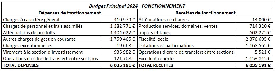 Détail du budget de Fonctionnement :